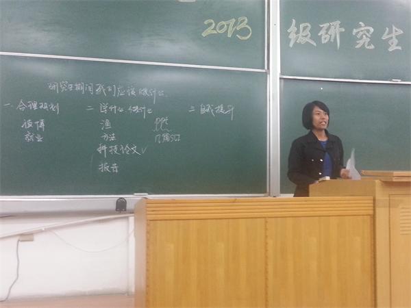 会上博士生导师环境工程研究所所长何玉荣教师作了题为《我的研究生生活该怎样度过的》主题报告,报告中何 老师与各位新生分享了作为研究生应该合理规划学习、认真撰写科技论文、学会听报告听讲座、不断自我提升、严格遵守学术道德、勇于面对挫折等。