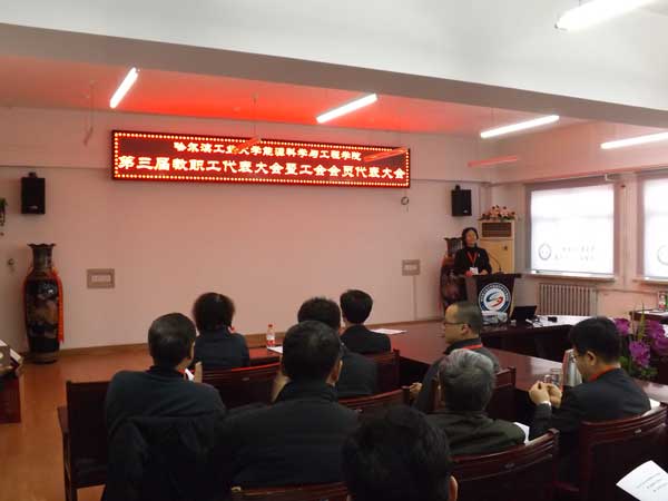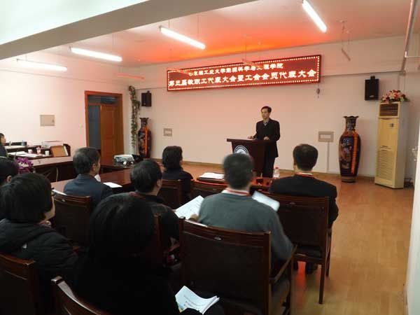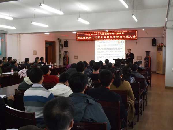 下午15时,在庄严的国歌声中会议正式开始。在大会总监票人刘辉同志的主持下选举产生了永乐高60net第三届教职工代表大会执行委员会成员和第三届工会委员会成员。永乐高院长赵广播同志做了题为《求真务实科学发展建设一流的永乐高60net》的工作报告。报告回顾了第二届教代会以来学院在师资队伍、科学研究、人才培养、国际合作与交流、学院党建及学生工作等几个方面的工作;对未来五年的工作进行了展望,同时找出工作中的不足及存在的主要问题,提出了下一步改进的措施。