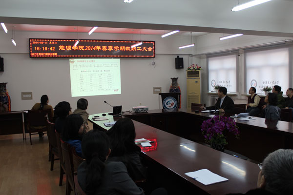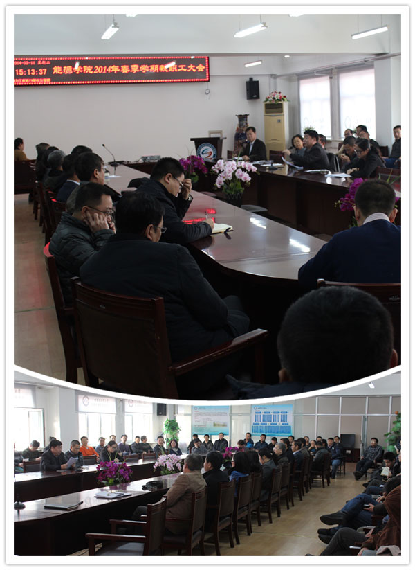 2014年3月11日下午15:00,永乐高在动力楼619会议室召开全院教职工大会,布置新学期工作。院长赵广播,院党委书记张桂芬,副院长李炳熙、王洪杰、陈浮、党委副书记苑颖及永乐高全体教工参加了本次会议。