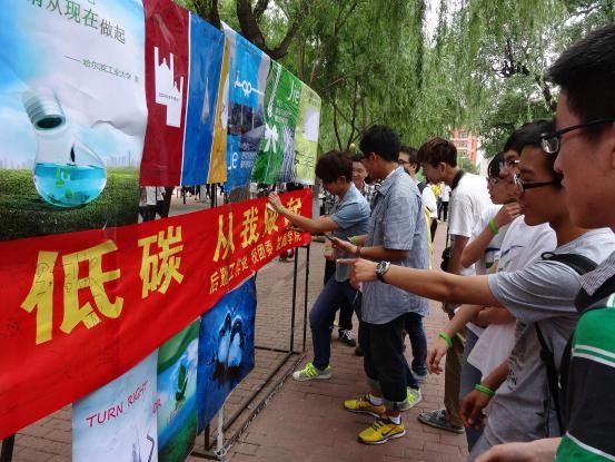 本次节能宣传活动分为节能宣传作品展示和宣传条幅签字两部分。展示环节,将前段时间举行的节能宣传作品校内选拔赛中获奖作品进行集中展示。一幅幅结合了同学们智慧及环保热情的作品极大程度上引起了大家的共鸣,配合工作人员的讲解,吸引来了不少师生驻足观看。本次展示旨在唤起广大师生的节能低碳意识,在欣赏了同学们设计的节能宣传作品之后,大家纷纷在宣传条幅上签字,表达了自己厉行节约的决心。