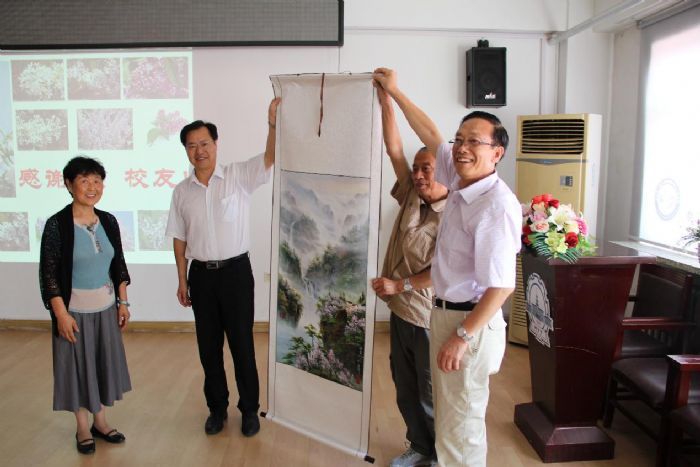 下午两点,学院在动力楼619举办的座谈会,永乐高院长赵广播,院党副委书记苑颖,以及曾经教过6524班的同学的老教师出席了座谈会。赵院长首先为老校友介绍了能源学院这些年来的变迁。之后,位校友依次介绍了这些年来自己的发展状况,并且表达了对学校、学院以及老师的感激之情,分享了自己的人生体会。座谈会过后,校友为永乐高赠送了自己准备的一幅山水画。