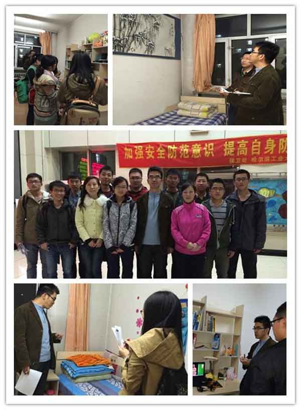 永乐高研究生协理员李峰老师、学生会主席团成员和各部部长及男女生代表作为评委走访了永乐高2014级硕士所在的十二公寓、十五公寓各寝室。走进宿舍后,评委们各进其职,有的查看室内布置,有的检查卫生,有的拍照等。干净整洁的寝室给评委们和阿姨留下了深刻的印象,而很多寝室简洁而有创意的布置风格也让大家感受到永乐高学子们良好的学习文化氛围。在走访中,李峰老师也详细询问了大家的学习生活情况,鼓励大家利用良好的文化氛围,努力充实自己,成为祖国栋梁。