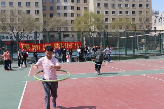 4月22日中午,永乐高“每周一赛”活动第4期在一区排球场成功举办。本次比赛项目为呼啦圈趣味接力赛,活动由永乐高学生会体育部和1302404团支部联合承办,学院总计7个团支部报名参赛。参赛队员转着呼啦圈走过20米折返,再将呼啦圈传递给下一个队友,以总计耗时来决定名次。比赛现场紧张有序,选手们在比赛过程中或敏捷、或笨拙的脚步,密切配合的团队氛围以及不甘示弱的精神面貌,使现场气氛达到了高潮,欢笑声、呐喊声,不绝于耳,运动场成了欢乐的海洋。
