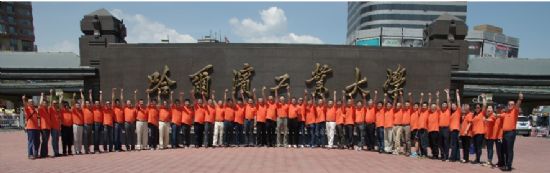 校友在校门合影