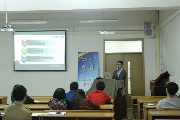 11月5日晚,永乐高“雅思考试与英语学习”活动在活动中心410成功开展。本次活动由永乐高树下老人服务站主办,1402403班承办。活动邀请了天才联盟国际部首席讲师David担任主讲,来自1402402班的戴维同学担任主持人。