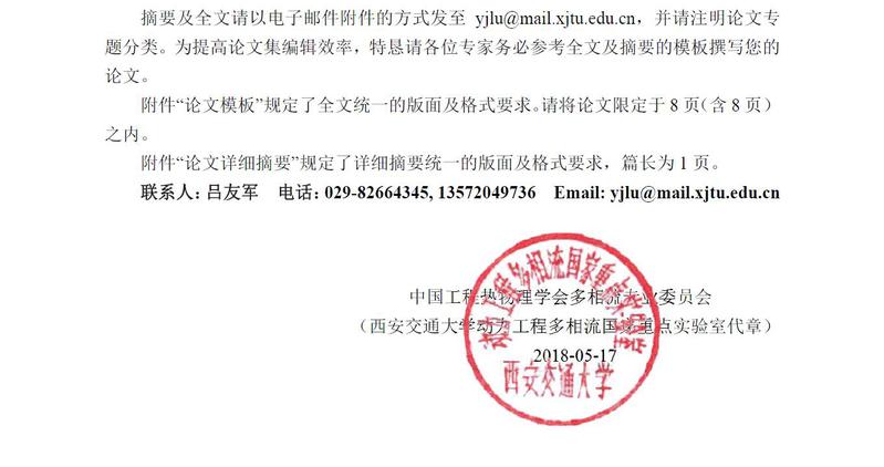 2018 年中国工程热物理学会多相流学术会议, 2018 年10 月19-22 日,北京