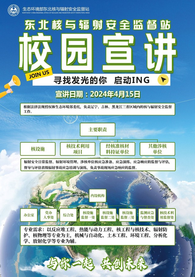 东北监督站成立于2006年,是生态环境部为加强东北三省核与辐射安全监管、保证辖区民用核设施建造质量和运行安全而设置的,全体在编人员参照公务员法管理。自成立以来,东北监督站始终坚持安全第一,依法严格监督,认真落实党中央决策部署和生态环境部(国家核安全局)工作要求,以“务实担当、规范清廉、协作进取、创新包容”为核心价值理念,开展核与辐射安全监管工作。主要职责为:核设施核与辐射安全的日常监督和核设施正常换料大修的监督管理和控制点释放、由生态环境部直接监管的核技术利用项目辐射安全和辐射环境管理的日常监督、铀矿冶辐射环境管理的日常监督、生态环境部核准的核材料许可证持证单位的相关监督检查,以及核设施及生态环境部直接监管的其他涉核单位核应急准备、应急演练、应急响应的监督与评估,督导与评估省级辐射事故应急培训与演练,负责事故现场应急响应的监督。