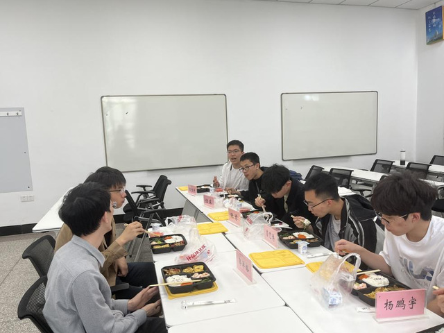 午餐会上,郭老师首先分享了自己的求学经历与科研探索的旅程。他详细介绍了个人研究方向,并围绕同学们关心的专业选择与就业方向进行了深入的讲解。尹政同学以研究生经历为基础,向同学们展示了研究生学习生活的基本情况和课题组的独特魅力。