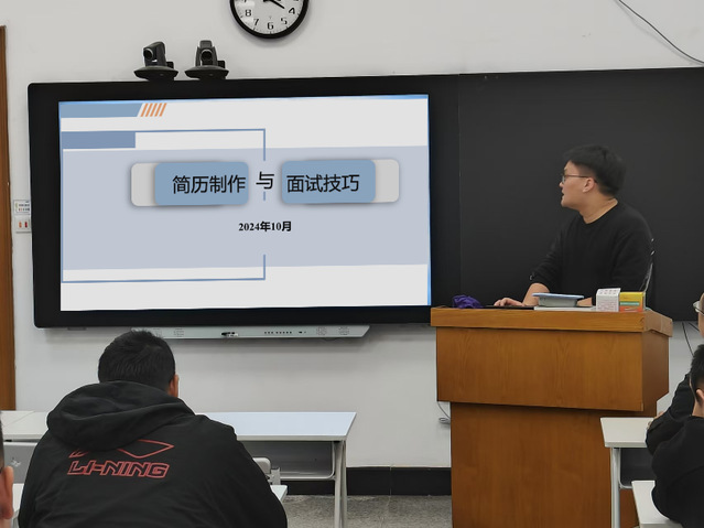 活动中,辅导员邱燚和班主任张文达、郭延铭强调了职业规划对于大学生成长成才的重要性,通过分享行业趋势、职业发展路径等信息,引导学生思考个人兴趣与市场需求之间结合点,鼓励学生结合自身特点,设定切实可行的职业目标。通过具体案例分析和实用操作技巧,为学生们讲解简历撰写的重要性、基本原则以及常见误区。简历作为求职者“第一印象”的重要性,老师们详细讲解了简历的基本结构和内容要点,包括个人信息、教育背景、实习经历、专业技能等,并重点强调了简历的简洁性、针对性和真实性。最后,老师们介绍了如何在大学期间有效积累实践经验、提升综合素质、解决简历撰写难题的方法。