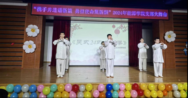 合唱《夜空中最亮的星》拉开活动帷幕,同学们清澈的歌声点亮了舞台,点燃现场观众的热情。朗诵《青春》慷慨激昂,将现场气氛推向高潮。《我和我的祖国》表达了能源学子对祖国的热爱与祝福,展现了能源学子浓厚的家国情怀。太极拳表演《吴式24式太极拳》更是将中国传统武术的魅力展现得淋漓尽致,赢得了现场观众的阵阵掌声。