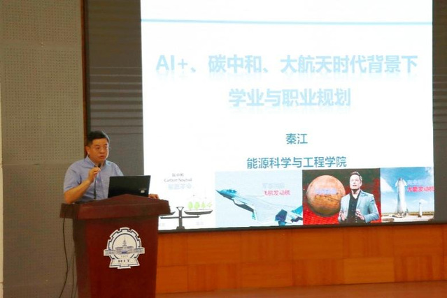 国家级高层次人才、博士生导师秦江教授作《AI+、碳中和、大航天时代背景下的学业与职业规划》主旨报告,报告围绕人工智能技术革新、碳中和目标以及航天产业快速发展三大趋势,深入分析了未来人才需求的变化,为师生提供了前瞻性的职业发展建议。