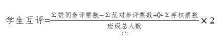 学生互评2分:以班级为单位,以学生互评为主等方式进行,应能充分反映研究生的日常德育表现和参加学院以及学校活动等表现情况,并确保学生互评工作的公平、公正、合理。学生互评计算公式如下: